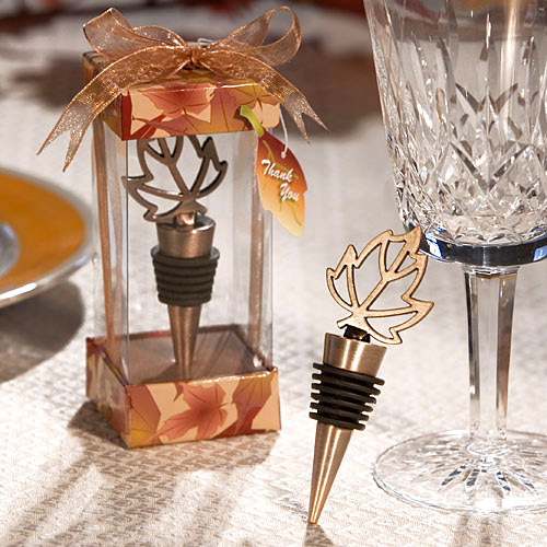 Find Autumn Themed Wine Bottle Stopper with quantity discounts here, along with other wedding favors and shower gifts. Autumn Themed Wine Bottle Stopper. Talk about a fall classic – this autumn themed wine bottle stopper favor can’t be beat